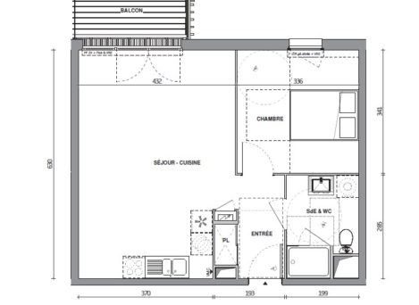comprenant une entrée avec placard, cuisine ouverte sur séjour, une chambre, salle d'eau avec douche accessible PMR et WC